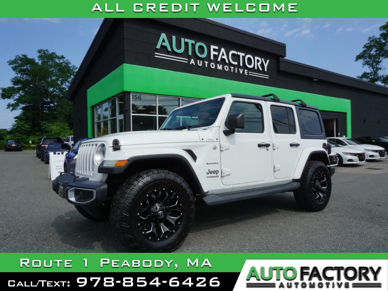 Buckle up for adventure in this sleek 2019 White Jeep Wrangler Unlimited! This bad boy is more than just a set of wheels - it's a ticket to freedom on the open road. With its rugged exterior and spacious interior, you'll be cruising in style and comfort wherever the road takes you. And hey, safety first, right? That's why a Carfax report is available for this beauty, giving you peace of mind as you hit the road. So go ahead, load up your gear, grab your sunglasses, and get ready to conquer the great outdoors in this reliable and stylish ride. Who said practical couldn't be fun?All Credit Welcome! Buying a vehicle at Auto Factory is Stress Free experience and we specialize in providing Transparency throughout the buying process. Shop online, and choose your vehicle from our Hand Picked Inventory for sale at the Best Prices, all with a clean title guarantee. Visit our dealership today and let us show you how We've Built a Better Way! We welcome all credit types and accept all trade ins. Shop Auto Factory Today! Visit our showroom in Peabody, MA, shop online at shopautofactory.com, or call/text 978-854-6426 today! Please call or text ahead to ensure vehicle availability. Prices and payments (including the listed down payment) do not include tax, titles, tags, $699 documentation fee, emissions testing charges, or other fees required by law, state fees, and/or lending organizations. Vehicles come with one key, dealership is not responsible for cost of additional keys